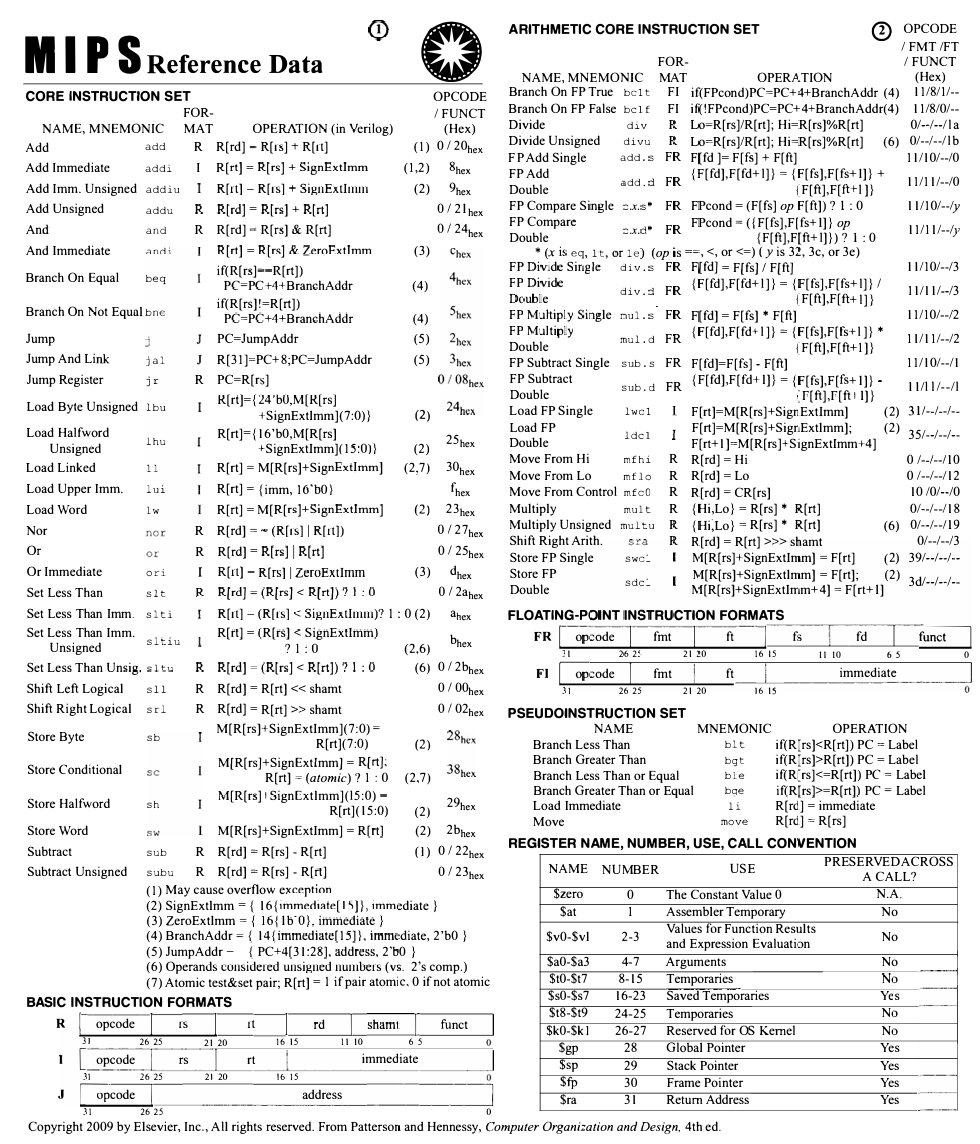 其中标注 $^*$ 的表示调用者保存寄存器。对应的指令非常简单,完整的手册仅一页纸:
